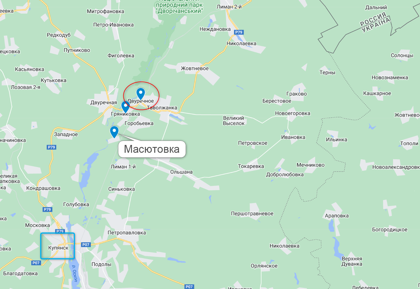 Це приблизно за 15 кілометрів на північний схід від Куп'янська з боку російського кордону. Україна втрати Дворічного на лівому березі річки Оскол не підтверджувала.