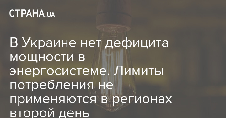 У вівторок, 14 лютого, в Україні немає дефіциту потужності в енергосистемі. Таким чином, ліміти споживання не застосовуються в областях вже другий день поспіль.