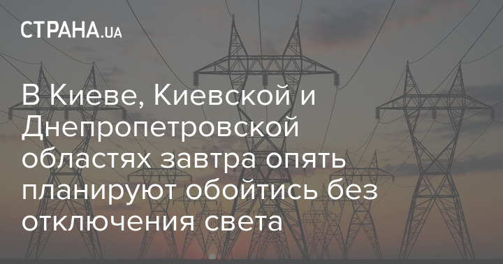 У Києві, Київській та Дніпропетровській областях завтра знову планують обійтися без відключення світла