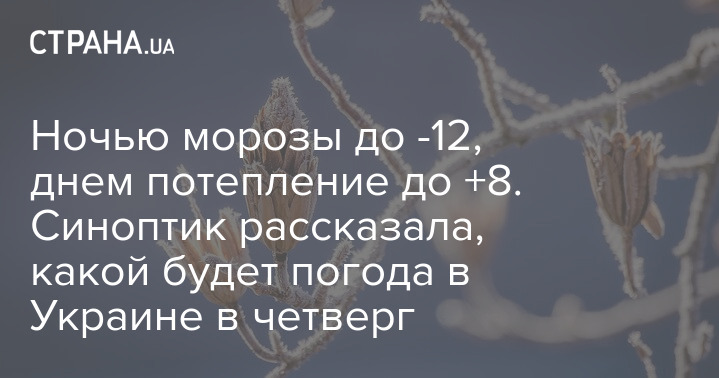 "Температура повітря вночі опускатиметься до -2...-7 градусів, а у східних областях - до -7...-12 градусів. Протягом дня потеплішає до 0...+3 градусів, у західних областях до +4...+8 градусів. На сході буде холодніше -1...-4 градуси" - пише Наталія Діденко.
