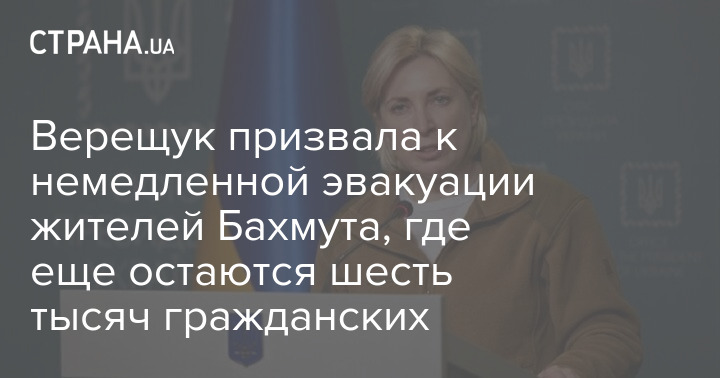 Віце-прем'єр-міністр України Ірина Верещук закликала мешканців Бахмута до екстреної евакуації.