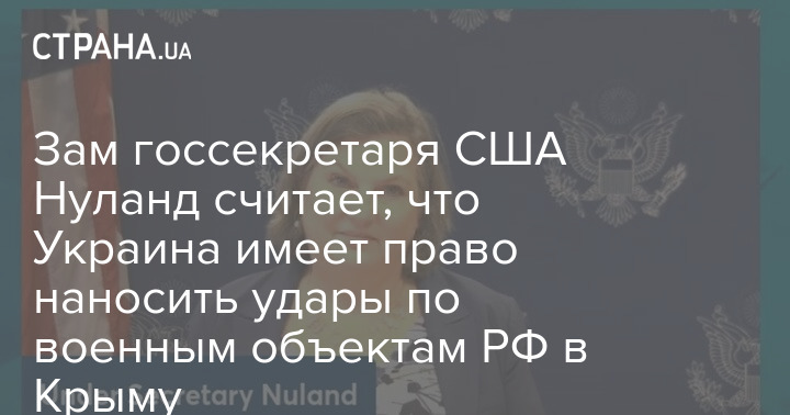 Заступник держсекретаря США Вікторія Нуланд заявила, що Україна має право наносити удари по військовим об'єктам РФ в Криму. За її словами, для надійного закінчення війни в Україні Крим має бути "демілітаризований".