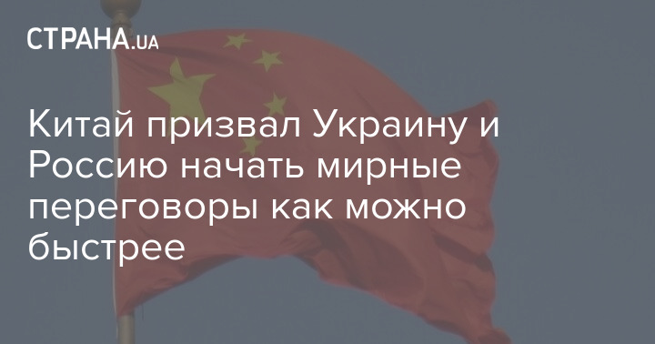 Китай закликав Україну та Росію припинити вогонь і розпочати мирні переговори якнайшвидше.