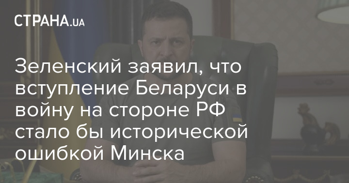 Зеленський заявив, що вступ Білорусі у війну на боці РФ став би історичною помилкою Мінська
