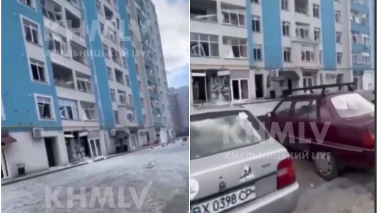 З'явилося відео пошкодженої багатоповерхівки у Хмельницькому після ракетного удару