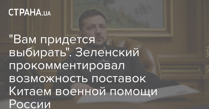"Вам доведеться обирати". Зеленський прокоментував можливість постачання Китаєм військової допомоги Росії