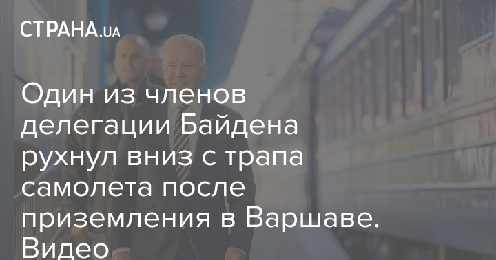 Під час початку візиту президента США Джо Байдена до столиці Польщі Варшави один із членів його делегації, очевидно, послизнувшись, покотився з трапу літака вниз.
