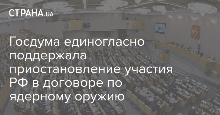 Держдума РФ одноголосно підтримала закон про зупинення участі РФ у договорі зі США про скорочення та контроль стратегічних наступальних озброєнь (ядерної зброї).