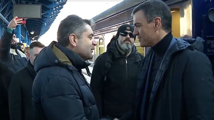 Перебійніс зустрів Санчеса на київському вокзалі. Іспанський прем'єр прибув поїздом.
