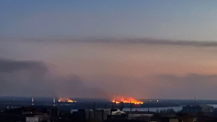 Фото пожеж на лівому березі Херсонської області сьогодні ввечері опублікував перший заступник голови Херсонської облради Юрій Соболевський.