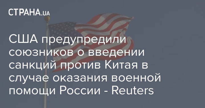 Сполучені Штати повідомляють найближчих союзників про можливість запровадження санкцій проти Китаю, якщо він надасть Росії військову допомогу для бойових дій в Україні.