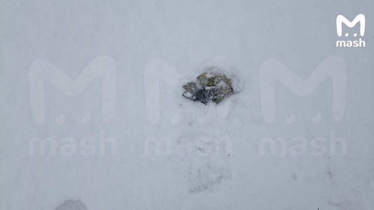 Після вибуху металеві уламки розлетілися біля вирви. Фото: телеграм-канал/Mash