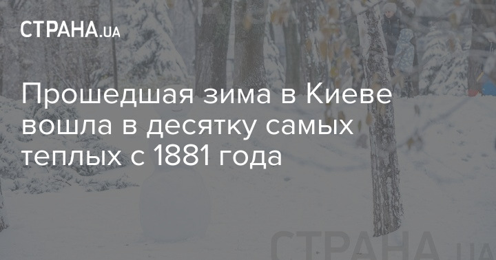 Середня температура повітря минулої зими в Києві склала -0,4 градуса, що вище за кліматичну норму на 2,1 градуса. Таким чином вона увійшла до десятки найтепліших зим у столиці з 1881 року.