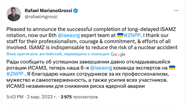 Це вже шоста ротація експертів на ЗАЕС. Раніше Гроссі заявляв, що ротація експертів на ЗАЕС затримується понад три тижні. Українське МЗС заявляло, що їхню ротацію блокує РФ.