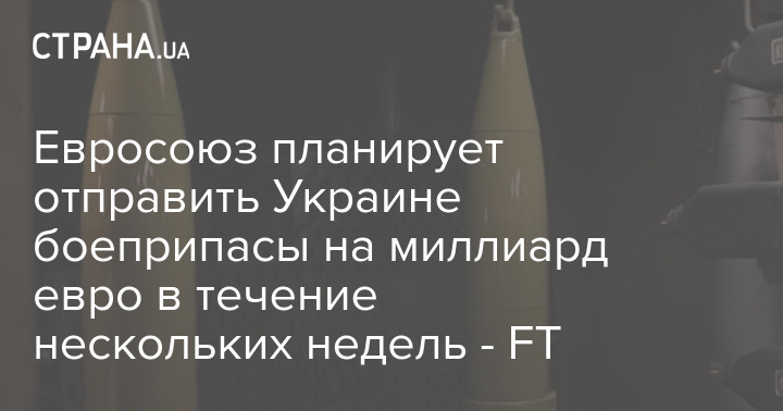 Європейський союз має намір відправити в Україну боєприпаси, що спільно фінансуються, протягом кількох тижнів. Із Єврофонду світу виділять мільярд євро на закупівлю снарядів для Києва.