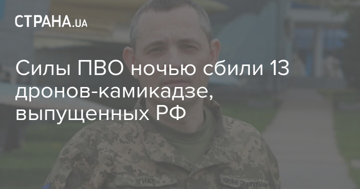 Російські війська під час сьогоднішньої нічної атаки запустили 15 дронів-камікадзе типу "Шахед". Українська ППО збила 13 безпілотників.