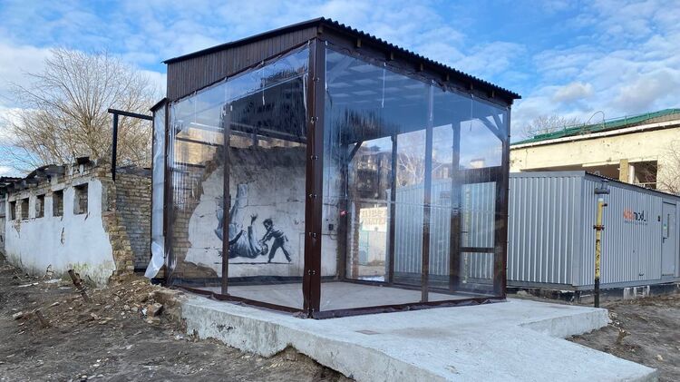 У Бородянці для захисту графіті британського художника Бенксі спорудили невеликий павільйон.