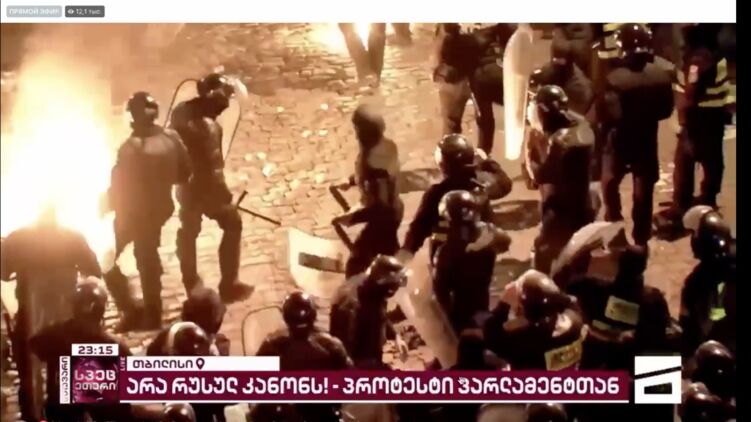 Нагадаємо, протест іде проти того, що парламент Грузії в першому читанні ухвалив закон про іноагентів, який запроваджує реєстр агентів іноземного впливу, які працюють на закордонні гроші.