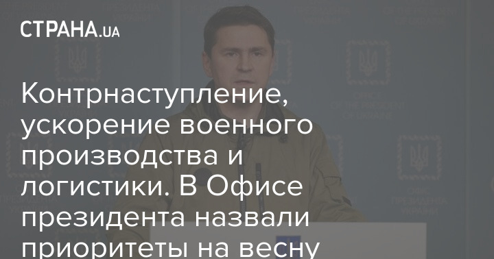 Радник голови Офісу президента Михайло Подоляк перелічив "правильні пріоритети на весну для антиросійської коаліції".