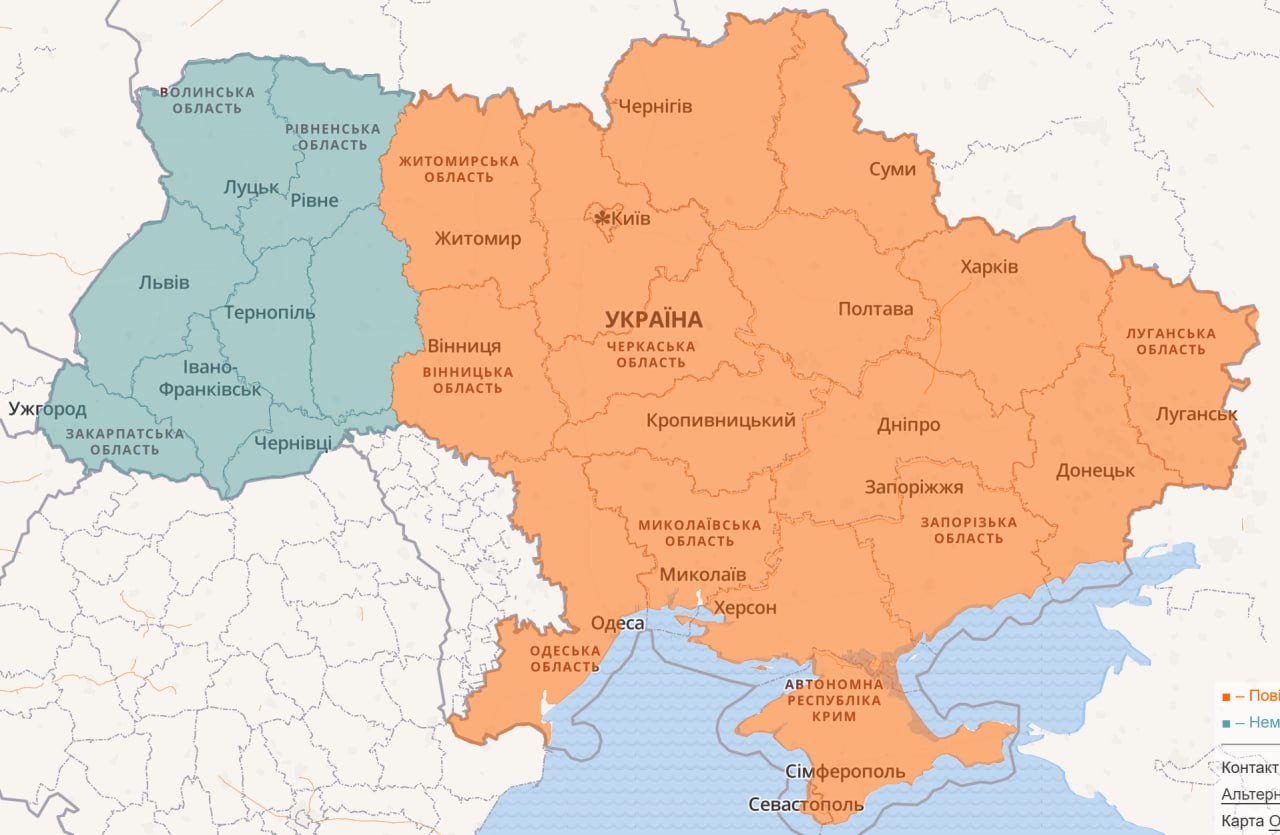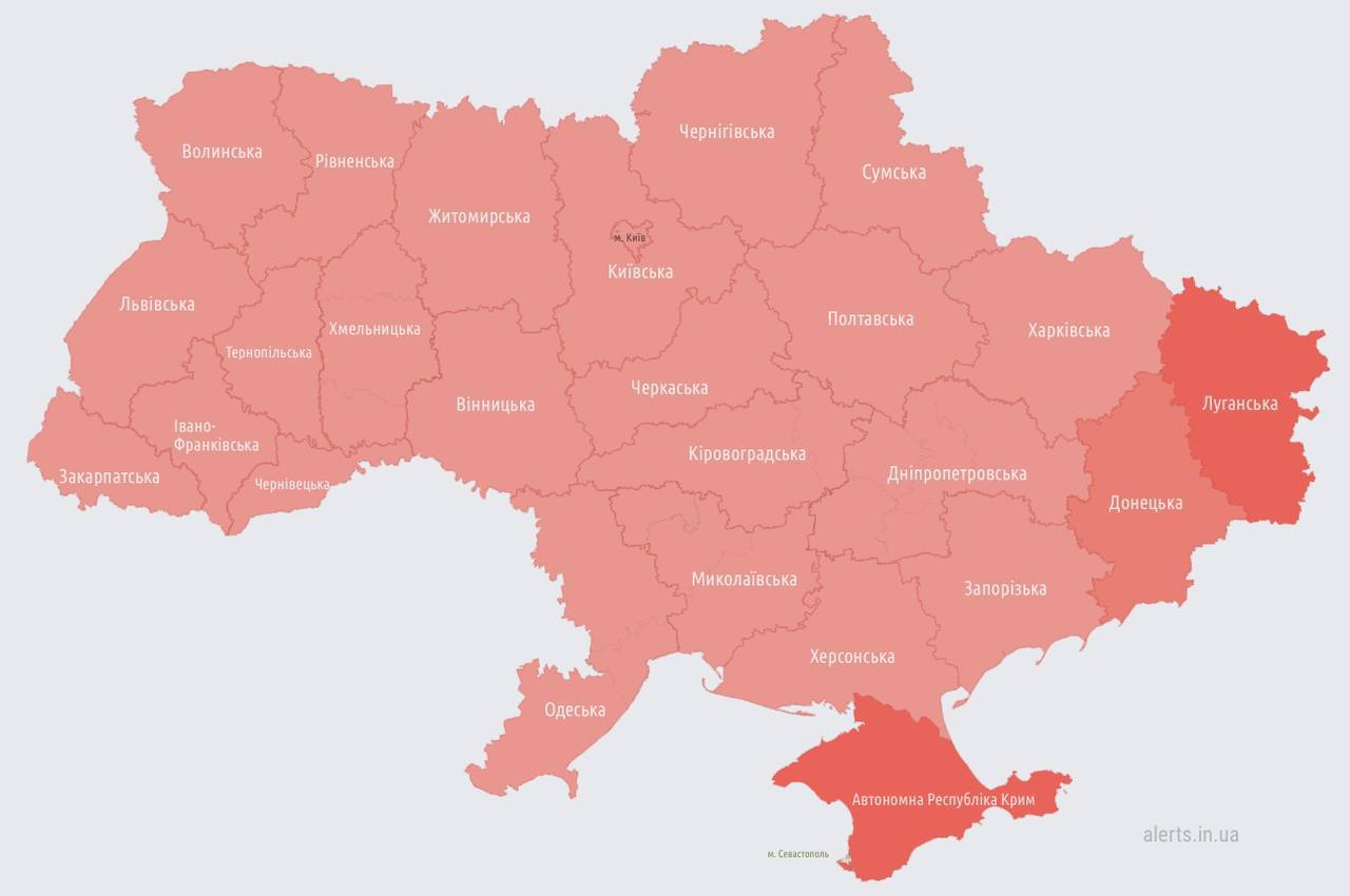 20:10 Тривога вже у всіх південних та центральних областях.