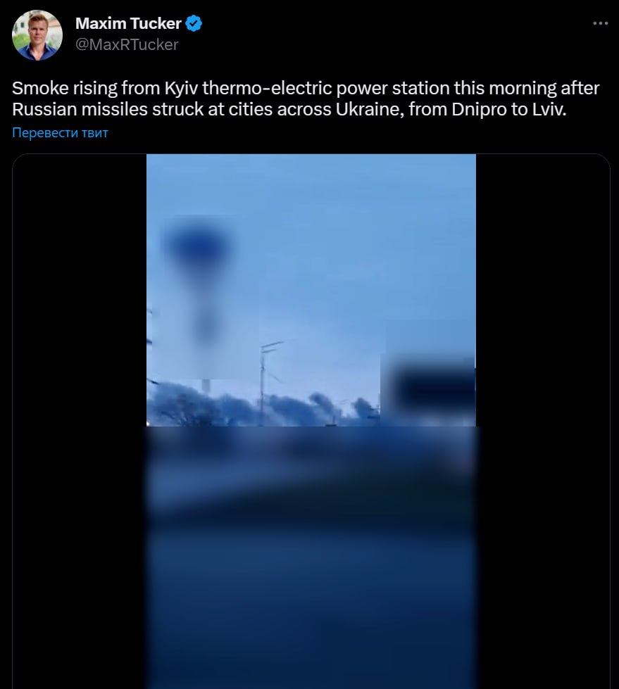 07:35 Кадр диму у Києві, який публікує кореспондент Times Максим Такер.