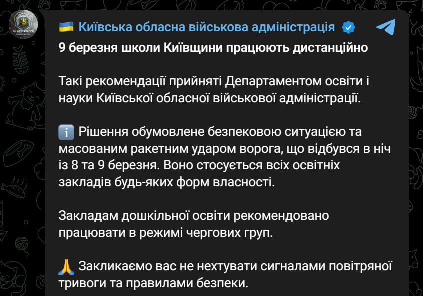 08:48 Військове зведення від Генштабу ЗСУ на ранок 9 березня.