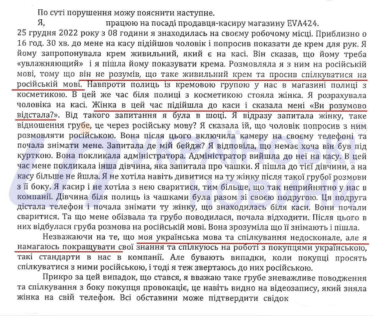Проте касир отримала штраф у 3400 грн, хоча закон дозволяє обслуговування будь-якою мовою, якщо цього просить клієнт.