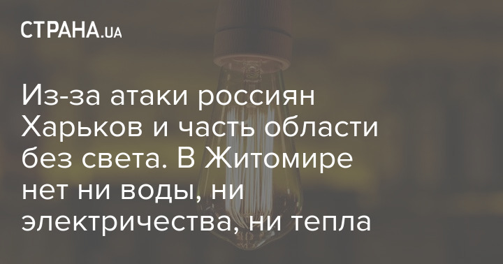 Через атаку росіян Харків та частину області без світла. У Житомирі немає ні води, ні електрики, ні тепла