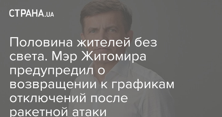 Внаслідок ракетної атаки 50% мешканців Житомира перебувають без світла, а область тимчасово повернеться до графіків відключення електроенергії.