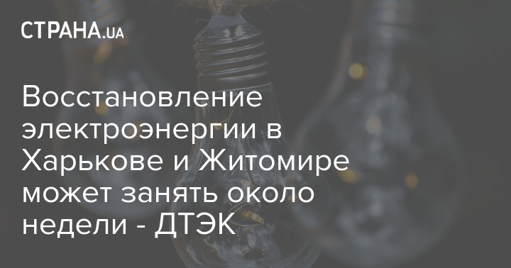 Відновлення електроенергії у Харкові та Житомирі може тривати близько тижня - ДТЕК