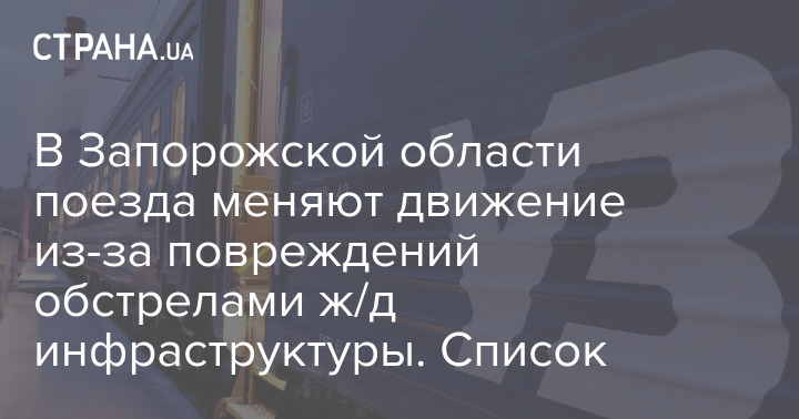 У Запорізькій області потяги змінюють рух через пошкодження обстрілами залізничної інфраструктури. Перелік