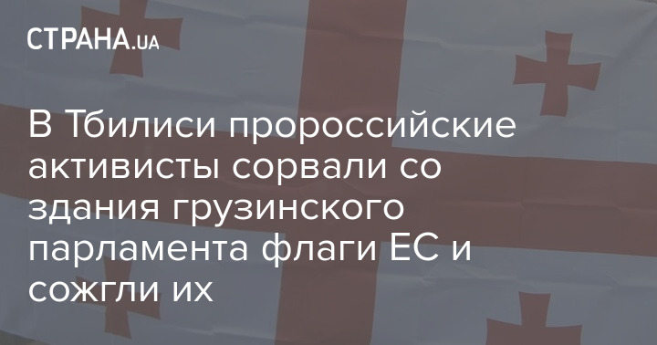 В Тбілісі проросійські активісти зірвали з будівлі грузинського парламенту прапори ЄС та спалили їх