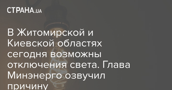 У Житомирській та Київській областях сьогодні можливі відключення світла. Голова Міненерго озвучив причину