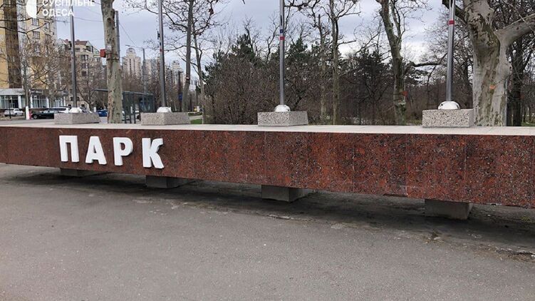 В Одесі у парку Перемоги зняли напис із частиною назви російською мовою. Фото