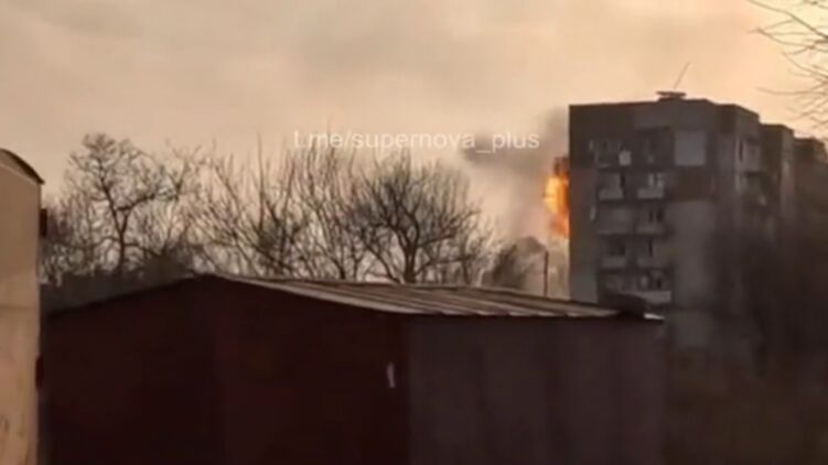 На відео можна почути звуки стрілянини. Також зафіксовано пряме потрапляння до житлового будинку.