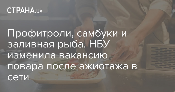 В НБУ опублікували вакансію кухаря, в якій було зазначено перелік страв, приготування яких було вимогою для претендента на місце до їдальні Нацбанку. Згодом опис вакансії змінили, прибравши звідти ці подробиці.