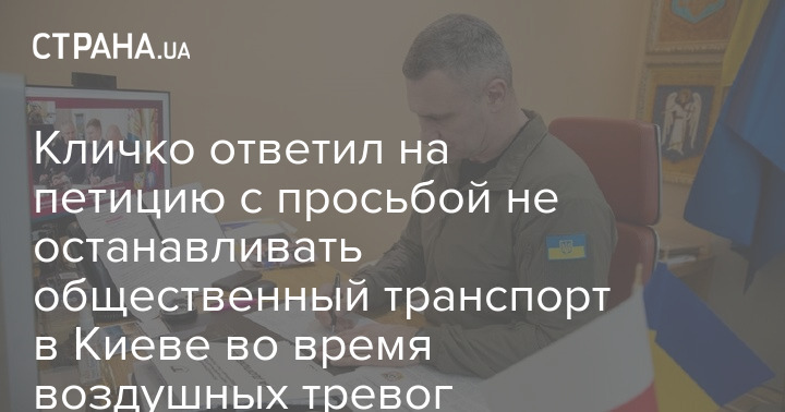 Мер Києва Віталій Кличко відповів на петицію з проханням не зупиняти громадський транспорт у Києві під час тривоги.