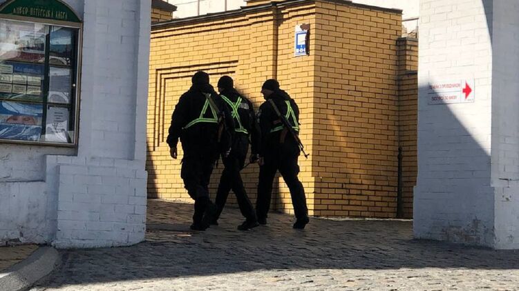 У Києво-Печерській лаврі, де ще зранку чергує багато правоохоронців, помітили поліцейських, озброєних автоматами.