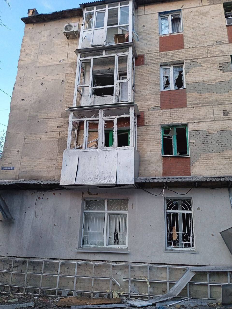 "Ворог завдав 2 ударів (С-300) і здійснив 4 залпи (РСЗВ "Ураган"). Пошкоджено 16 багатоквартирних будинків, 8 приватних будинків, дитячий дошкільний заклад, будівлю Костянтинівської державної податкової, газові труби, 3 автомобілі", - пише Єрмак.