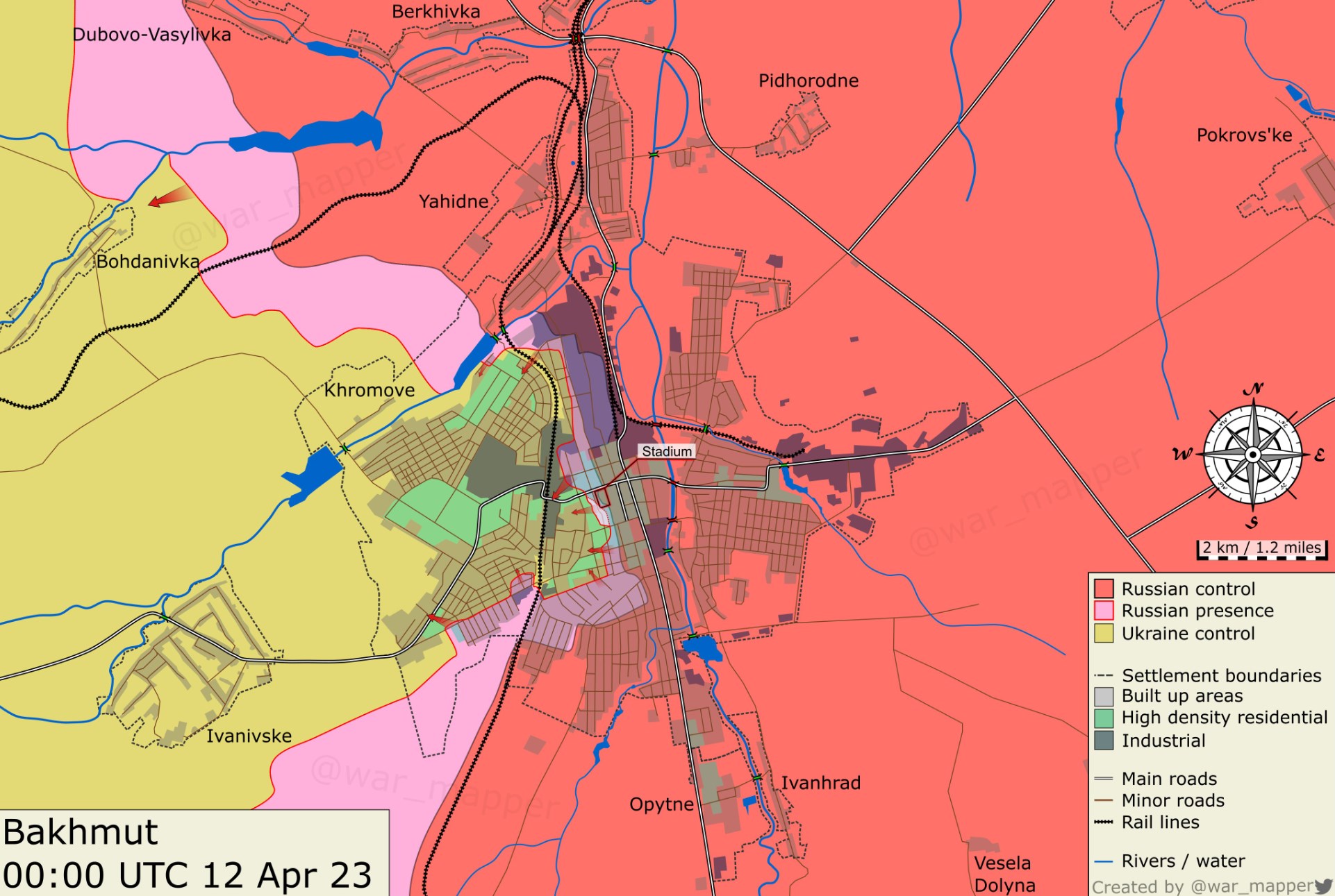 "Вагнерівці" також, зважаючи на все, просунулися далі на захід у центрі міста, взявши під свій контроль стадіон "Металург". Фото звідти вони опублікували сьогодні.
