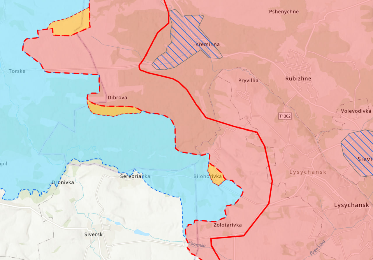 Як повідомляв Генштаб, на Лиманському напрямку бої йдуть поблизу населених пунктів Білогорівка та Спірне. "Інститут вивчення війни" (США) пише, що російські сили досягли успіхів у лісовому масиві на південь від Кремінної.