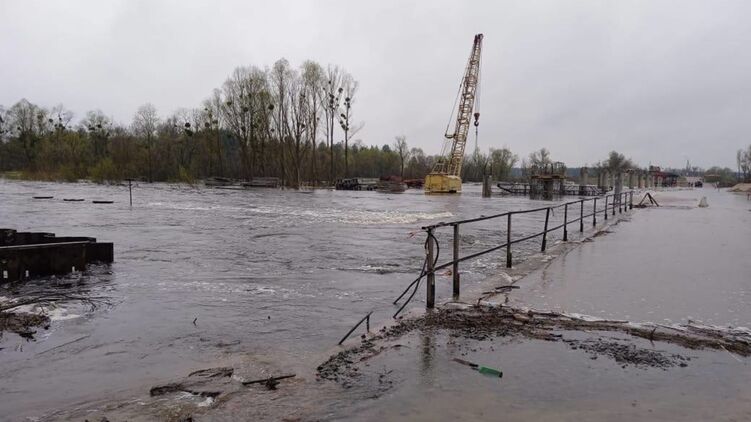У селищі Іванків Київської області під воду пішла тимчасова переправа внаслідок дощів. Через опади розмило греблю місцевого ставка, водою затопило вулиці населеного пункту.