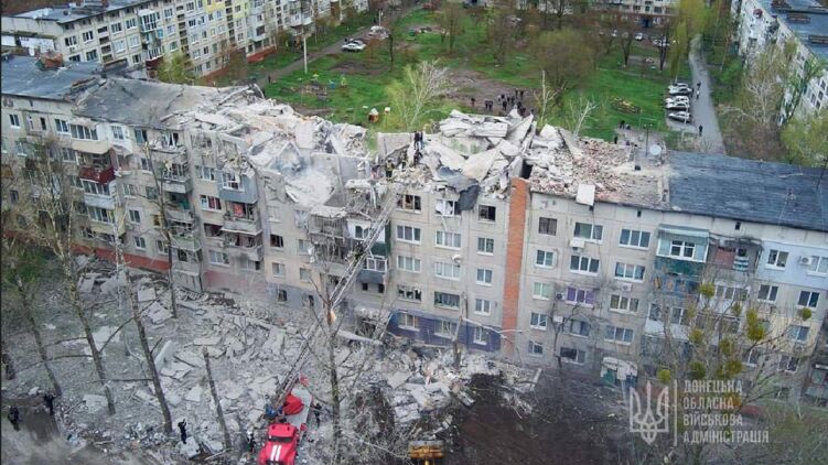 Нагадаємо, сьогодні російські війська завдали ударів по Слов'янську та Костянтинівці Донецької області. В одному із пошкоджених багатоповерхових будинків ударом знесло кілька верхніх поверхів.