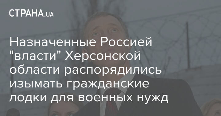 Призначений Росією "розділ" Херсонської області Володимир Сальдо розпорядився вилучати цивільні човни в регіоні для передачі їх на користь військових.
