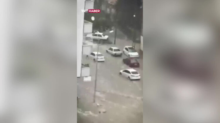 Потужні зливи з градом обрушилися на турецьке місто Адан, вулиці якого перетворилися на справжні бурхливі річки.