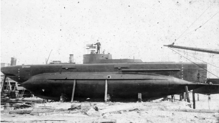 Творцем Defender був Саймон Лейк, шанувальник Жюля Верна та його роману "Двадцять тисяч льє під водою". Defender був описаний ВМС США як "експериментальний". Його затьмарив підводний човен Holland, створений Джоном Філіпом Холландом, який називають першим сучасним підводним човном ВМС США.
