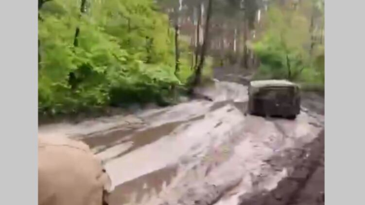 У Мережі з'явилося відео розмитих доріг у районі Кремінної Луганської області. Військова техніка грузне у бруді.