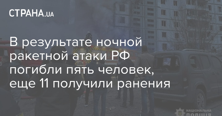 Внаслідок нічної ракетної атаки РФ загинули п'ятеро людей, ще 11 отримали поранення