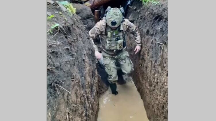 На відео можна побачити, що погодні умови не змінюються. В окопах, як і раніше, стоїть вода.