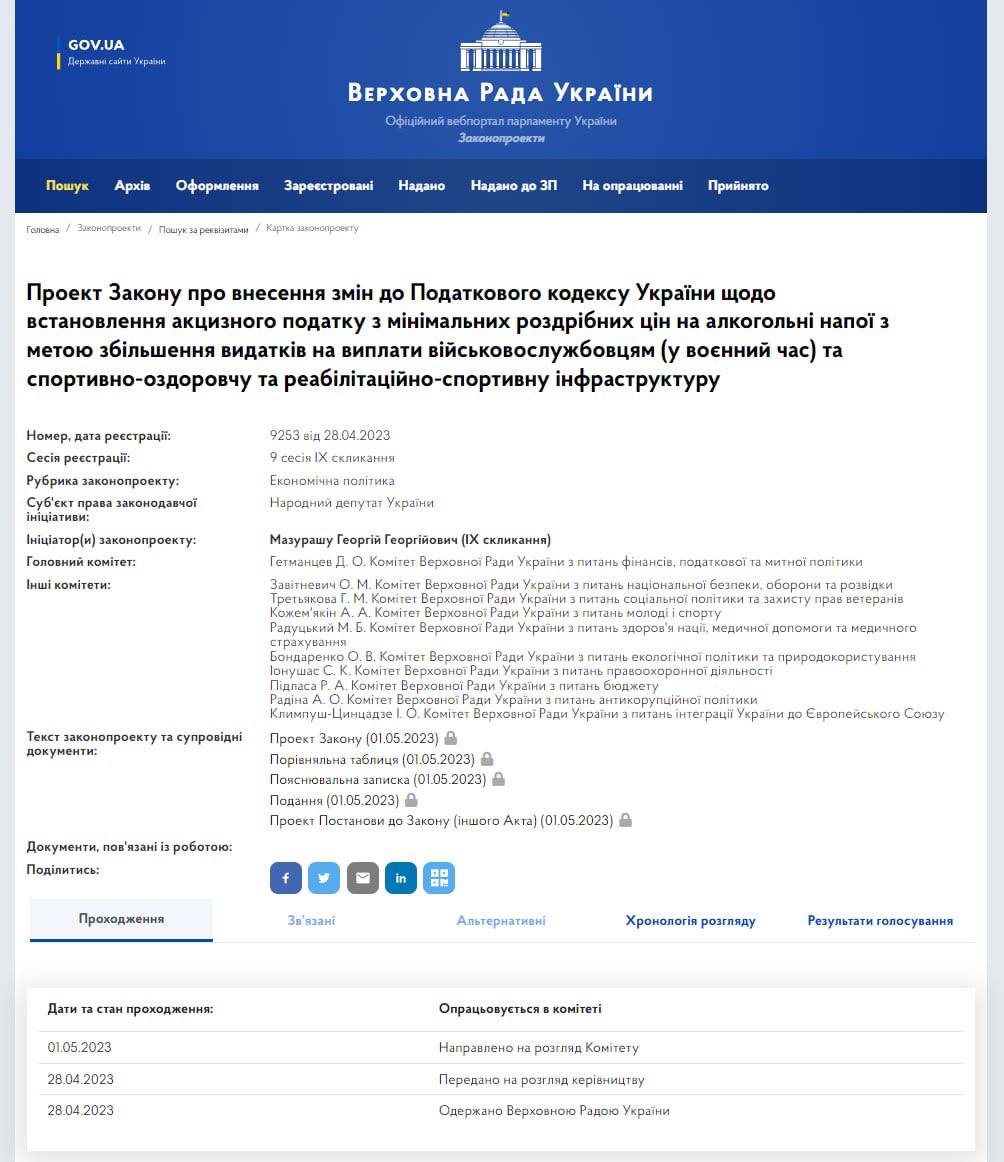 У Верховній Раді зареєстрували три законопроекти (№9251, 9252, 9253) про підвищення на 10% акцизів на алкоголь. Виручені кошти планується спрямувати на виплати військовим.